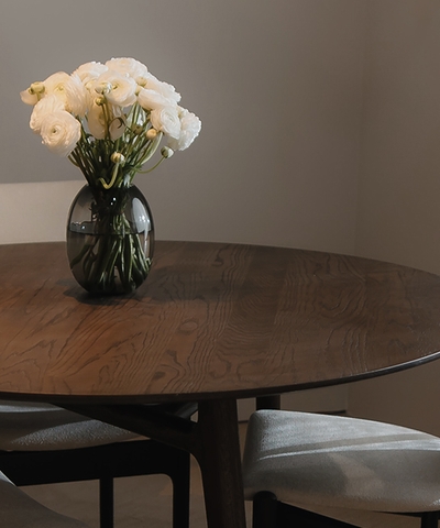 Изделия коллекции Primo из массива дуба выполнены в округлых формах — дизайн мебели и благородные древесные отделки наполняют интерьер истинным уютом.
