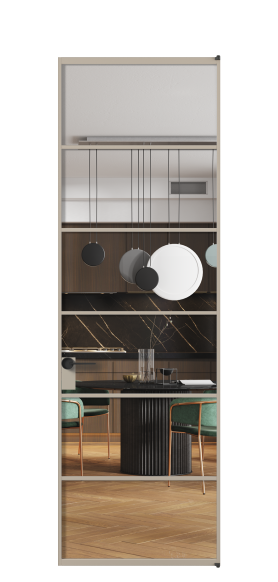 Минималистичный профиль повторяет форму профиля алюминиевых раздвижных перегородок Формато, что позволяет легко сочетать оба решения в одном пространстве.