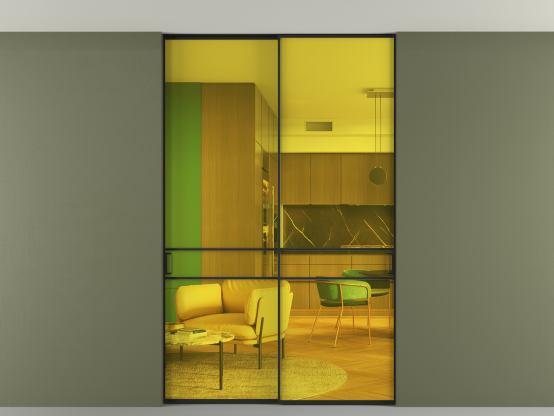 Алюминиевые перегородки имеют единый профиль с алюминиевыми дверьми и легко сочетаются в одном пространстве, не перегружая его. Также их можно комбинировать в интерьере с полотнами из нашего стандартного ассортимента. Помимо этого, система алюминиевых перегородок и дверей координируется со стеновыми панелями Волховец.